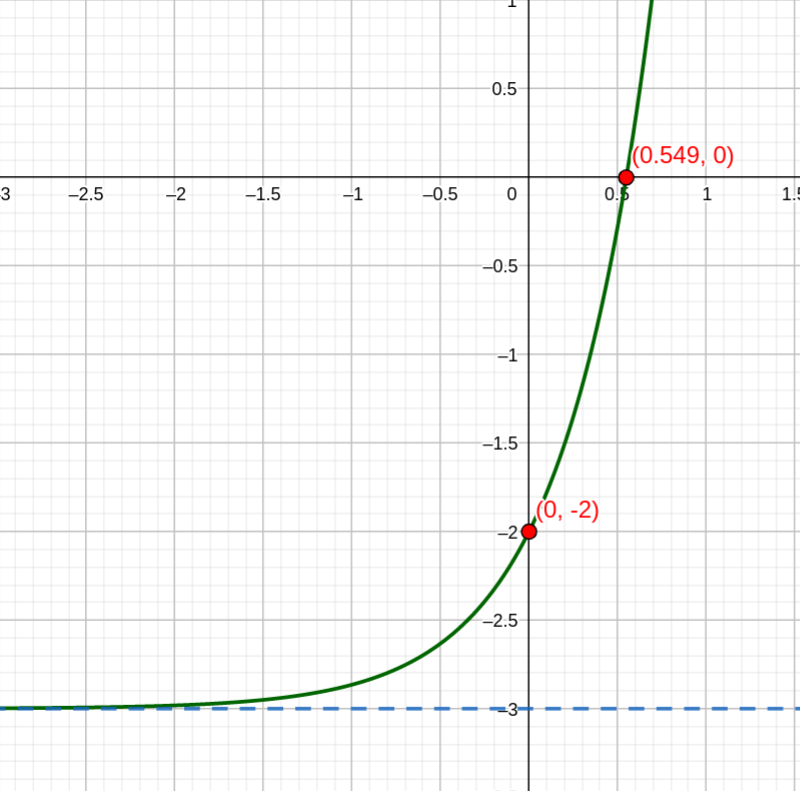 - Es tracta d'una funció exponencial que tenen asímptota horitzontal però no vertical.