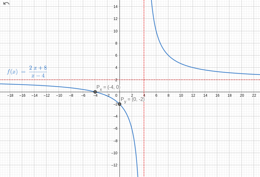 \[ f(x)= \frac {2x+8}{x-4} \]