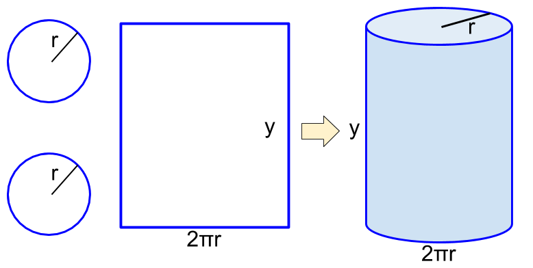 Anomenarem \(y\) a l'alçada del cilindre i \(r\) al seu radi.
